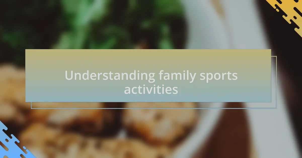 Family sports activities encompass a wide range of physical engagements that not only foster health but also strengthen relationships. I often find that playing a game of soccer with my kids not only boosts our heart rates but also deepens our bond as we laugh and cheer for each other. Have you ever noticed how a little friendly competition can lighten the mood and create lasting memories?
