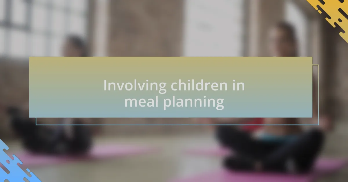 In my experience, including children in meal planning can also spur meaningful conversations about nutrition. When I point out the benefits of certain foods while we hash out our weekly menu, it opens up a dialogue that wouldn’t normally occur. I often find myself sharing stories about how different ingredients can give us energy for our swimming lessons or help us grow strong—just the kind of context kids appreciate. Isn’t it incredible how a simple meal plan can turn into a fun, educational moment?