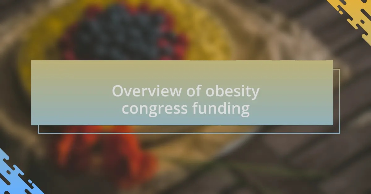 Funding for obesity congresses often comes from a mix of governmental, non-profit, and private sources. I remember when I attended my first congress—it was striking to see how the financial backing influenced the topics discussed and the research presented. I couldn’t help but reflect on how vital these funds are in shaping the field of obesity research, supporting innovative studies, and promoting collaboration among experts.
